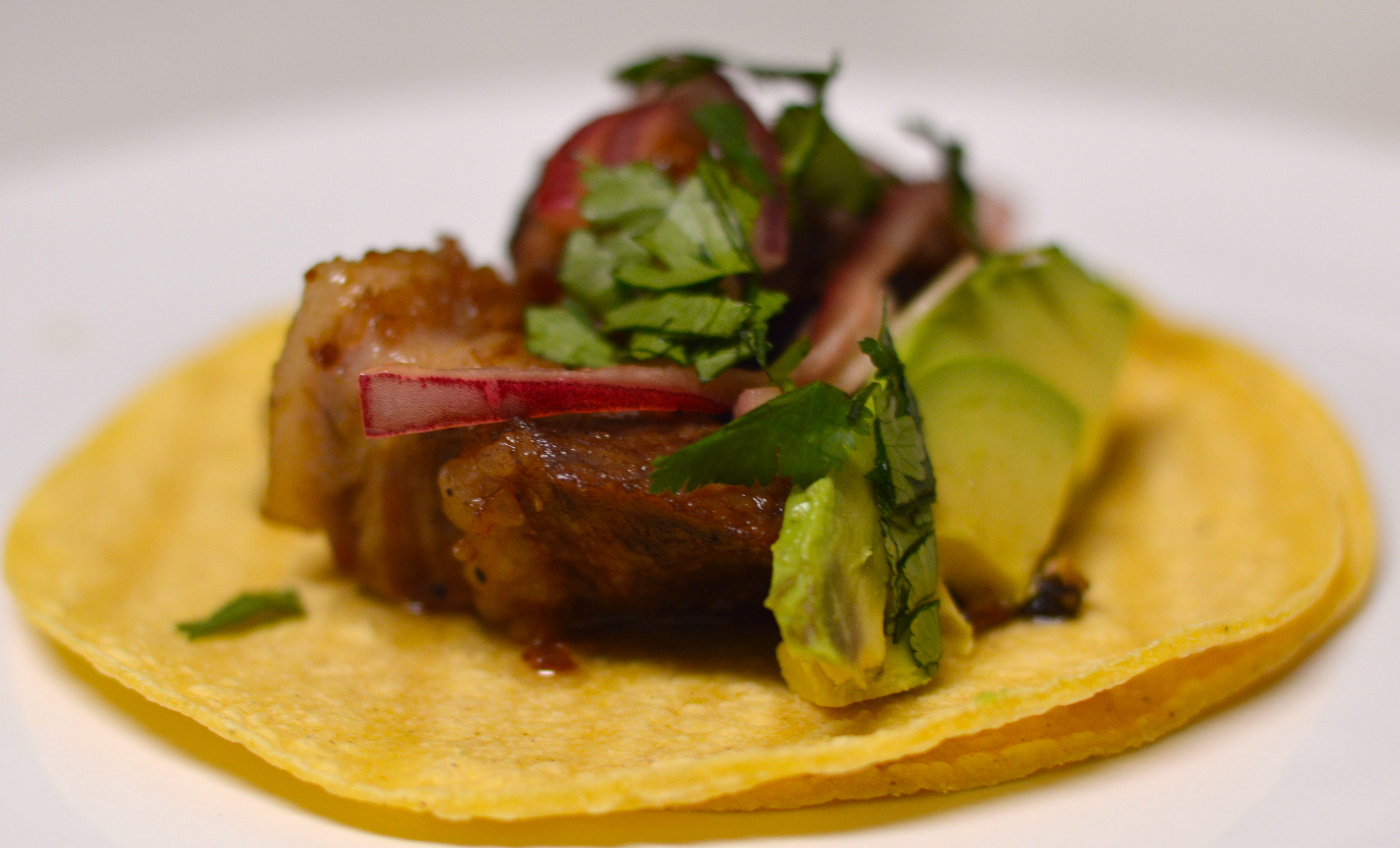 Despite the deliciousness of the carnitas, you really need some accompaniment to take your final tacos to the next level. I used some avocado, cilantro, salsa from an excellent place called Bad Dog Taqueria and some pickled onions I made myself. These were just sliced onions soaked in sherry vinegar, water, salt and sugar for an hour or two. These few toppings really cut the fat in the pork and made this dish one of the best things I’ve had in a while.