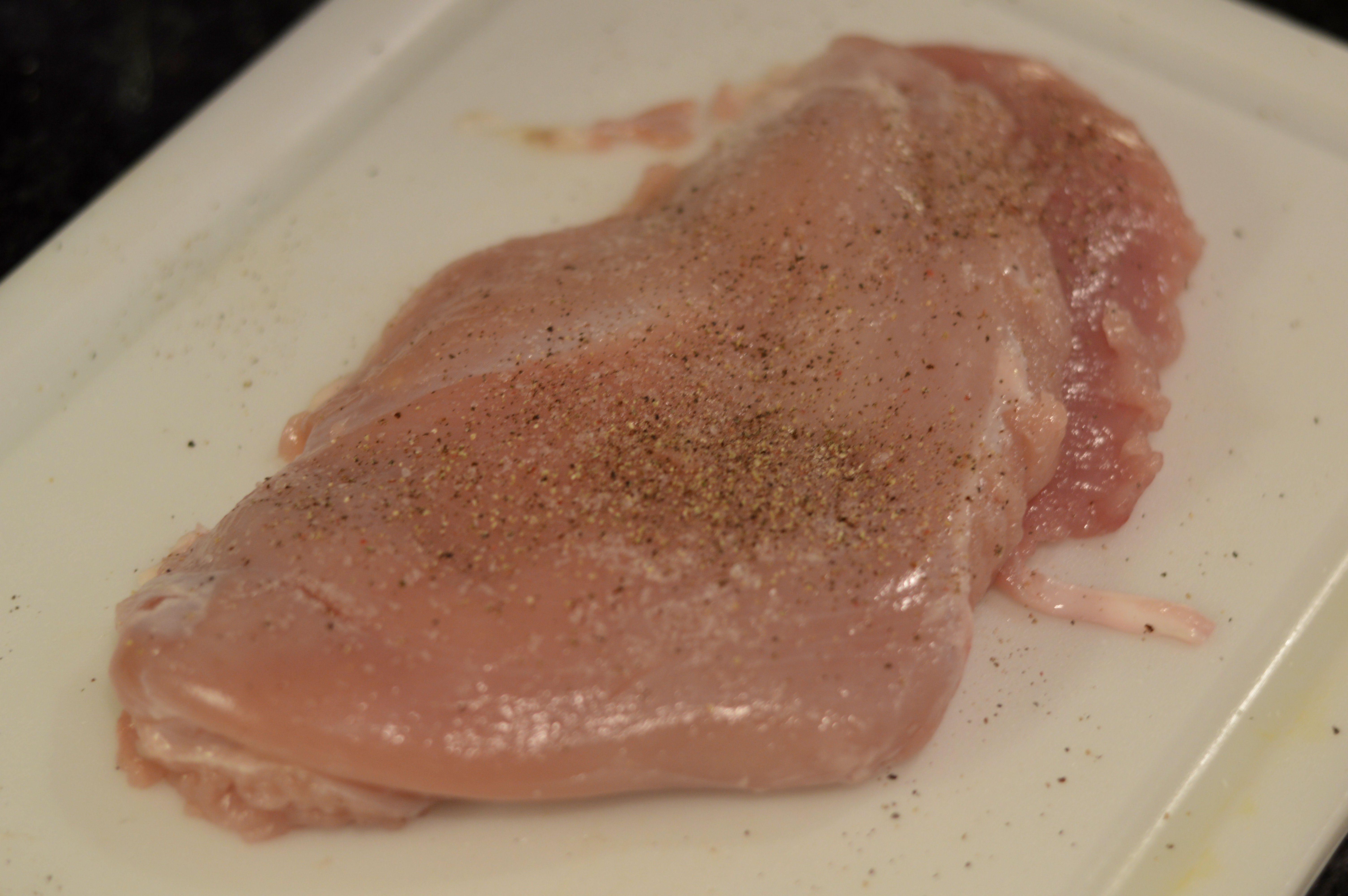 One of the turkey breasts with salt and pepper.