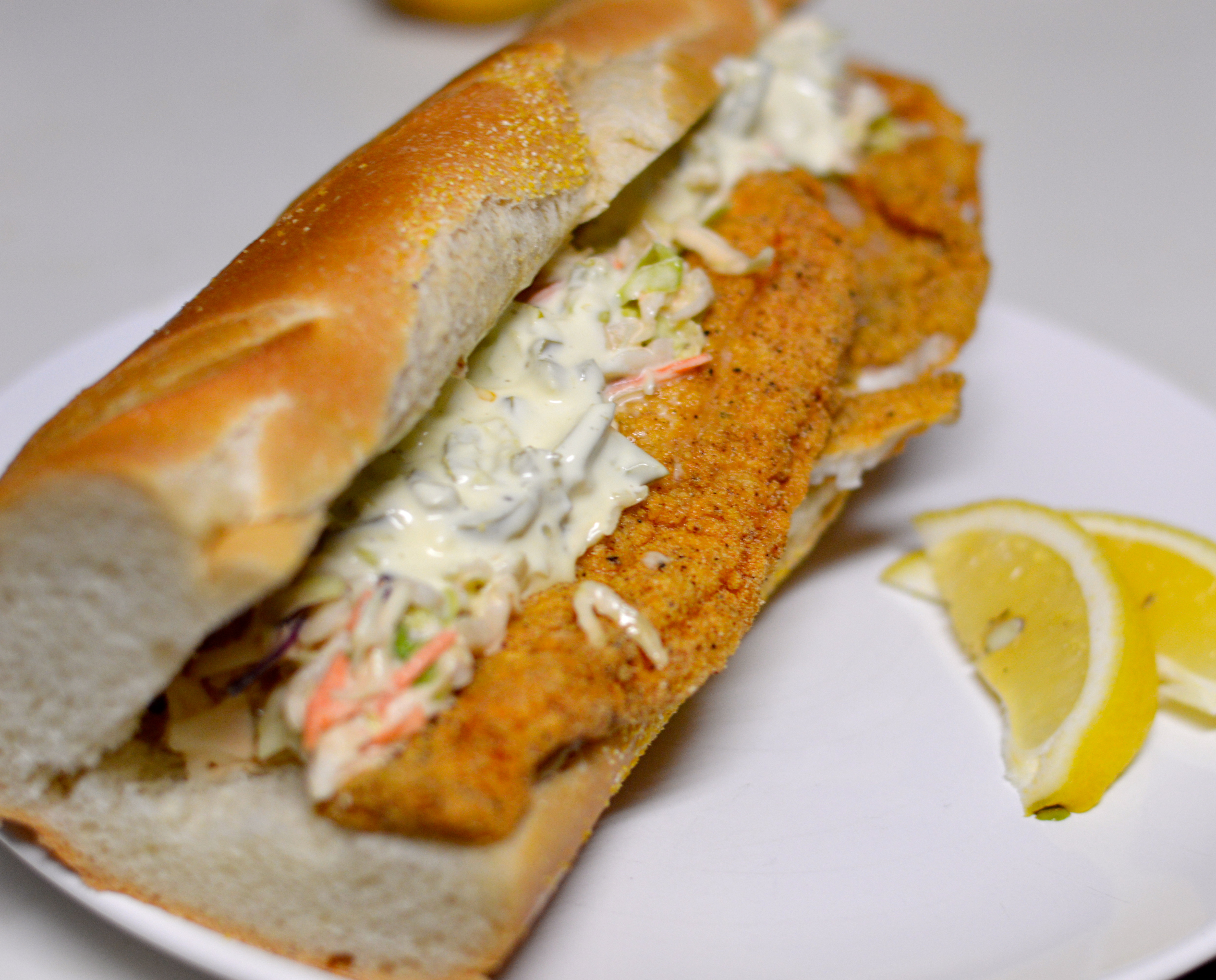 DSC_0602 Without really thinking about it, I accidentally made multiple dishes that kind of perfectly fit into a Mardi Gras theme. Last week, I did shrimp étouffée with grits, which was really good. But I think this catfish po’boy  is even better, and the best thing about it is how easy the breading is. Flour, cornmeal and cajun seasoning. Then you fry it. Game over.